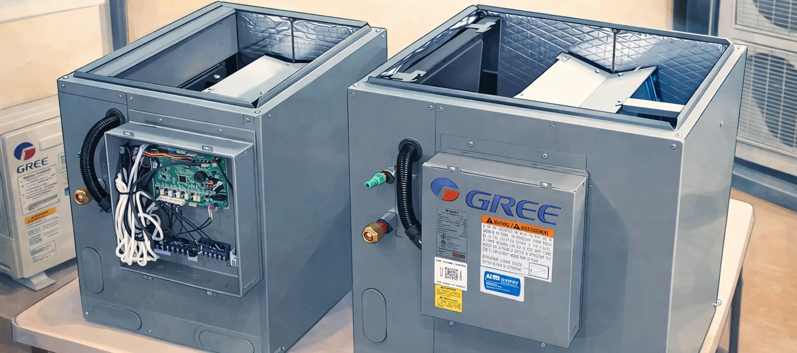 - Incorrect line set sizing: GREE specifies 3/8" x 3/4" refrigerant line sets for these systems. Using 7/8" suction line is not recommended. GREE does not provide a charging chart for non-standard sizes, and 7/8" line has produced audible vibration noise in the line set. Using 1-1/8" suction line is not acceptable and risks inadequate oil return and equipment damage.